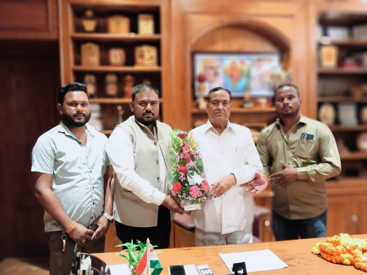 भवन निर्माण की स्वीकृत मीलने के बाद पूर्व विधानसभा अध्यक्ष गौरी शंकर अग्रवाल का आभार व्यक्त करने के लिए नगर अध्यक्ष नागेश्वर साहू सहित बीजेपी कार्यकर्ता भीखम जायसवाल,उमेश साहू ने सौजन्य भेंट किया ।